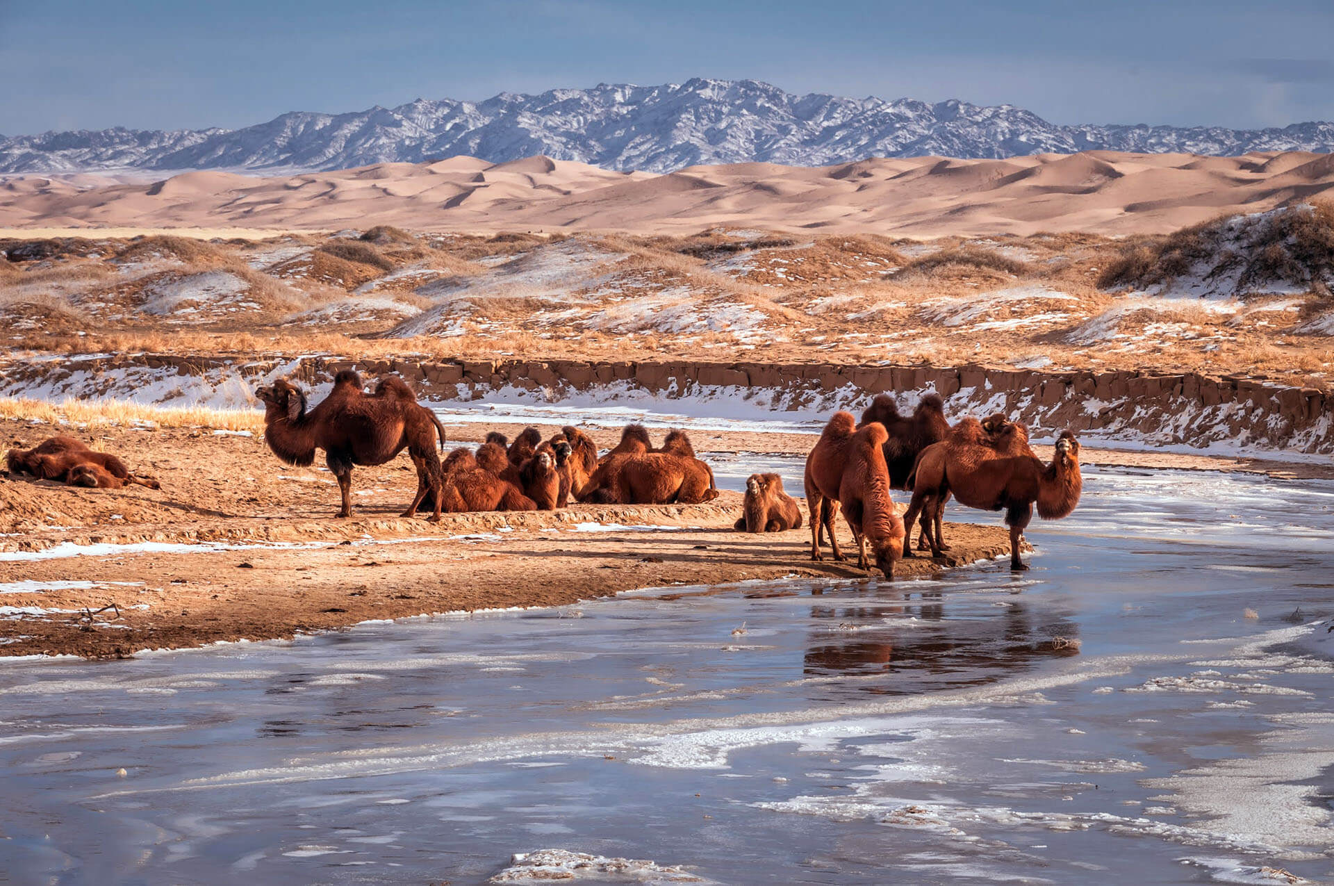 Mongolian Gobi has the most extreme environment and challenging weather conditions with +40C in summer while the winter temperature can reach as low as -40C. Two humped -Bactrian camels are native to the Gobi Desert. Camels are perfectly adapted this changeable climate and, they have an advantage to live in this temperature with wide flat feet could easily walk on desert sand as well as in soft snow. Camels also have survived in desert with their thick lips allow them to eat plants that most other herds can’t, and two rows of long lashes protect their eyes from blowing sand, and sand up nose also can shut their nostrils during sand storms. Therefore, large fat filled humps can provide vital nutrients when food and water is scarce. Camels are only mammal which can survive for longer without water, it’s because of the fat filled humps release water. In addition, their humps allow camels to dissipate heat easily in hot climate, either storing fat as a layer of insulation to protect them against the low temperatures